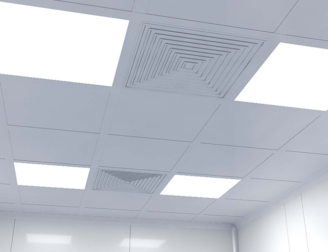 Questa soluzione permette di mantenere il classico look di una camera bianca a modularità nominale di 600x600mm, 600x1200mm oppure 1200x1200mm, con le prestazioni di un controsoffitto ad alto carico.
